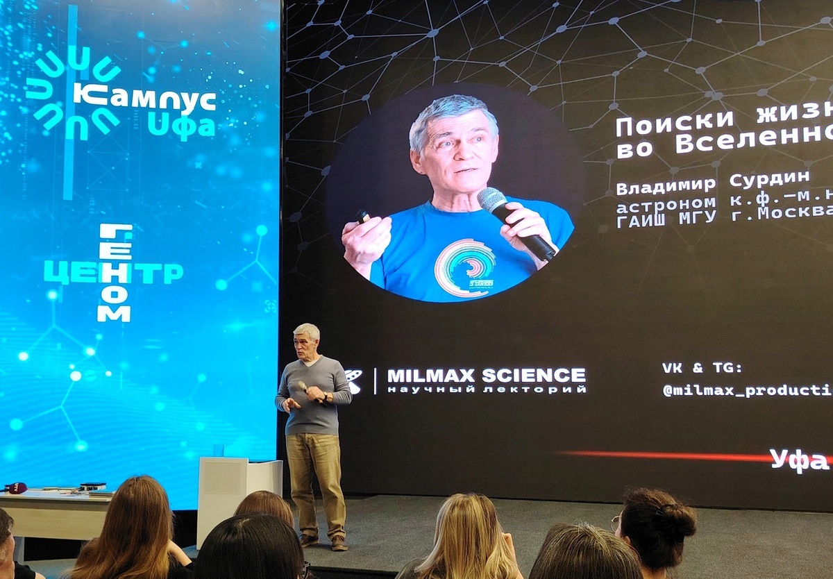 В Уфе с лекцией о поисках жизни за пределами Земли выступил известный астрофизик, старший научный сотрудник Государственного астрономического института имени П. Штернберга, доцент МГУ и популяризатор науки Владимир Сурдин. Он рассказал, как ученые ищут элементарные и разумные формы жизни на планетах Солнечной системы и за ее пределами.