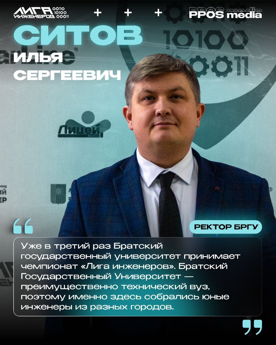 Чемпионат «Лига инженеров» не является исключением. Первым гостем мероприятия является ректор Братского государственного университета Ситов Илья Сергеевич. Благодаря его поддержке и содействию «Лига инженеров» уже третий год подряд проводится на базе нашего университета. #ЛигаИнженеров