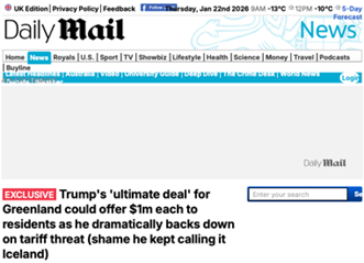Нарёкшие себя цивилизованными, продолжают ликбез на тему высоких демократических стандартов. На этот раз шокирующим откровением стала норма, которая раньше туземцам подавалась, как страшный грех. Готовы? Подкуп голосов не только может быть, но и может быть публичным. Правда, если сумма подкупа не гречка, как на Украине, а миллион долларов. Цитирую Daily Mail: ««Идеальная сделка» Трампа по Гренландии может предусматривать выплату каждому жителю по 1 миллиону долларов… <> …предложение жителям Гренландии (население 57 000 человек) в размере 1 миллиона долларов каждому - 750 000 фунтов стерлингов или 850 000 евро - если они проголосуют за вступление в Соединенные Штаты». Кто говорил, что покупать голоса – это не демократия? Ещё какая демократия! В статье вы не найдёте ни единого намёка на аморальность подкупа, что говорит о том… Ну, вы и сами поняли о чём.