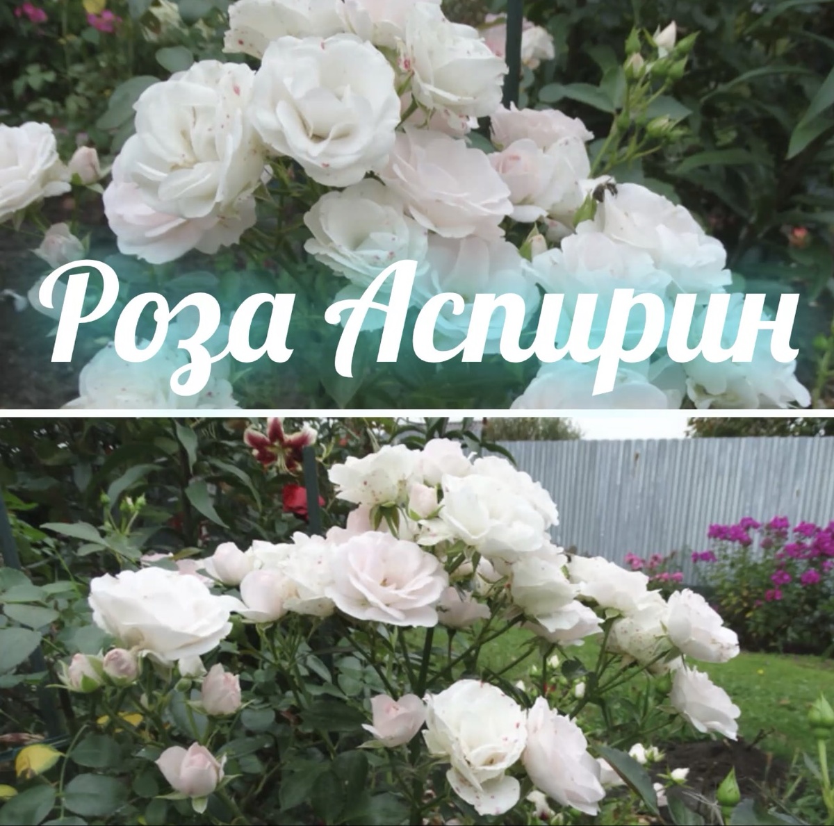Вот если существуют розы без проблемные, то это Роза Аспирин! Относится к флорибундам. Немецкий питомник, Tantau, 1997 г. Цветет всё лето с небольшими перерывами. В Сибирских условиях зимует с укрытием, просто не рискую и укрываю каждый год. Но при низкой обрезке и окучиванию перегноем, может зимовать и без укрытия, не так страшны морозы как весенние оттепели и солнечные ожоги. Высота куста около 100 см, ширина куста достигает 150 см., побеги сильные. На одном побеги распускаются от 2-15 бутонов. Лист не крупный. Цветы в диаметре 5-7см, не махровая. Распускается нежно розовым и далее становится белым, но есть особенность, в прохладную погоду ( конец августа, сентябрь) - всегда нежно розовая. При регулярных подкормках куст выглядит белым облаком, весь усыпан цветами. Еще одна особенность розы Аспирин, она самоочищающая. После того как отцветает цветок, лепестки не висят «сухарями» на кусту, а самостоятельно опадают до того как засохнут. Легко размножается и быстро укореняется з