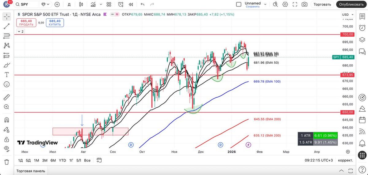 Поэтому акцентировал внимание на том, что мы всё это проходили, и не паникуем, а продолжаем действовать в направлении тренда. В данный момент также видим силу ротационной отрасли: $DIA, $RSP, $NYA, $RUT и полупроводников $SMH — которые практически вообще не отреагировали, а просто вернулись к своим быстрым скользящим. $VIX нарисовал безумную падающую звезду на закономерности 20$ = позитивно для «бычьего» тренда. Обращаем также внимание на слабость техов, и при восстановлении $MAGS за 20 EMA W — можем получить хорошую точку входа. Но если $SPY захочет сходить к 20 EMA W — то получим в очередной раз золотую точку входа. #spy #технический_анализ #америка #трейдинг_сша #фондовый_рынок #обзор #вывод #qqq #vix #smh #mags #xlk #ixic