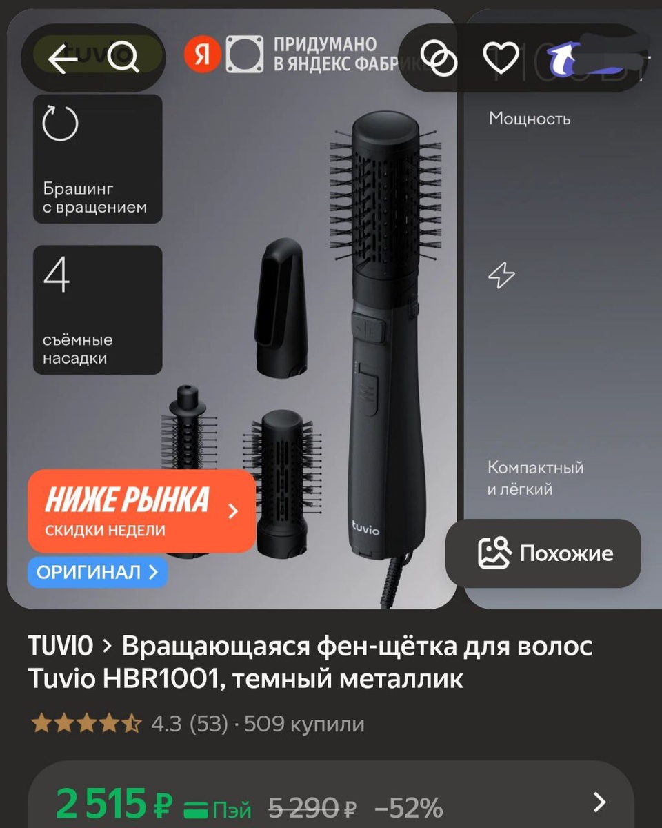 π»ΠΡΠ°ΡΠ°ΡΡΠ°ΡΡΡ ΡΠ΅Π½-ΡΡΡΠΊΠ° Π΄Π»Ρ Π²ΠΎΠ»ΠΎΡ Tuvio HBR1001, ΡΠ΅ΠΌΠ½ΡΠΉ ΠΌΠ΅ΡΠ°Π»Π»ΠΈΠΊ - 2515Ρ (Ρ.ΠΏΡΠΉ