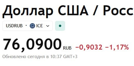 💸 Доллар по 76. Торгуется близко к локальному минимуму начала декабря