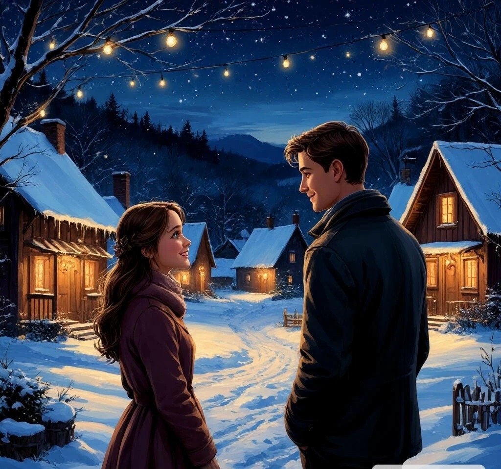 Описание работы: В деревне горят огни. Светлыми звездами украшена зимняя ночь, и слышен шум полыньи, а скромная девушка улыбается. Он улыбается ей