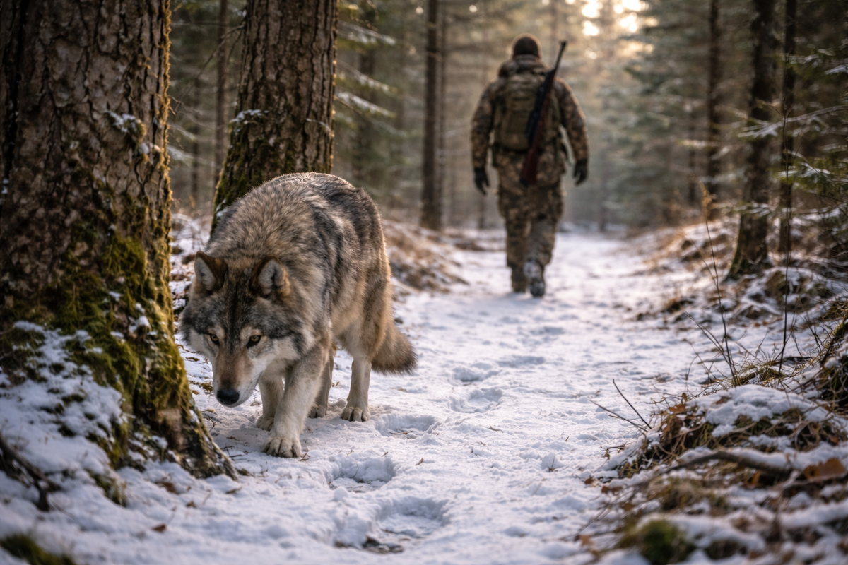 Старый путик — вещь обманчивая. Ты знаешь его годами. Каждый поворот, каждую валёжину, каждую кочку. Именно поэтому на нём расслабляются. Эта история произошла в начале января, в самом обычном месте — там, где за последние десять лет ничего не случалось. Охотник Николай вышел рано. Мороз был умеренный, около минус пятнадцати, небо чистое. Идти предстояло недалеко — проверить пару капканов и вернуться до темноты. Старый путик шёл по кромке болота, потом нырял в смешанный лес. Место знакомое, безопасное, «домашнее». Николай шёл не спеша, иногда останавливался, прислушивался. Лес был тихий — слишком тихий. Оно не было страхом. Скорее — неудобством, как будто что-то не на своём месте. Николай остановился, оглянулся. Ничего. Следы — только его. Птицы не тревожились. Ветра не было. Он пошёл дальше. Через несколько минут появилось снова. Теперь отчётливее. Не звук. Не движение. А чувство, что ты уже не один. Николай снова остановился. Постоял дольше. Прислушался.