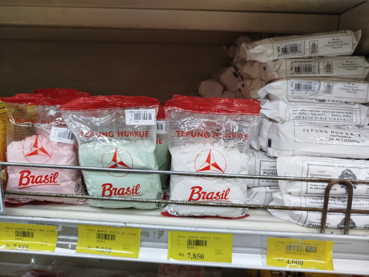 Hunkue (hunkwe) — более сложное заимствование. Это составное слово, где первая часть указывает на крахмал или муку, а kue — на тип изделия. Буквально его можно перевести как «крахмал для сладостей» или «мука, из которой делают сладости».