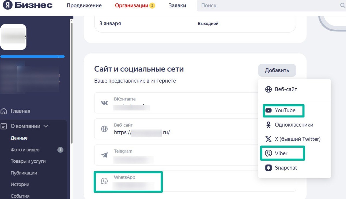 Коротенько о том, как указать соц.сети и мессенджеры в Яндекс Бизнесе.