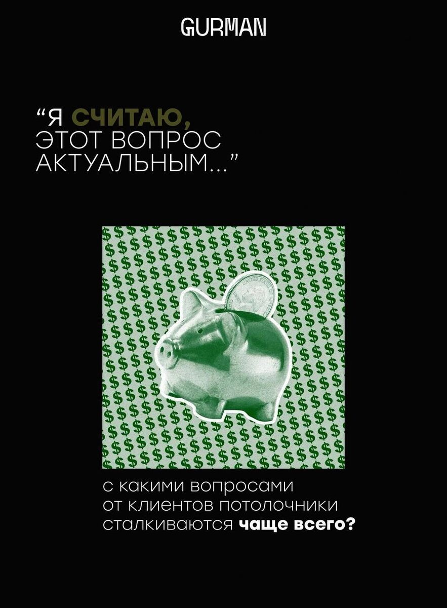 ? 💰 Утро менеджера компании по натяжным потолкам не всегда начинается с кофе…☕️ Зато вопросы стоимости услуги имеют схожее действие с природным компонентом в его составе – кофеином. Когда клиенты заинтересованно бомбардируют фразами “Сколько стоит потолок?” ровно с 9:00, сонливость как рукой снимает. 👍 ‼️ Правда, частота такого сочетания слов имеет и негативный эффект, поэтому вопрос становится автоматически “нелюбимым”. Причем их список бывает достаточно большим. Это то же самое, что поинтересоваться у дизайнера интерьеров, будет ли готовый проект точь-в-точь, как на визуализациях… 🏠 Кстати, дизайнеры, в вашей работе от какого вопроса передергивает глаз? 🤔 Пишите в комментариях свои варианты, а мы расскажем про наш топ.👇