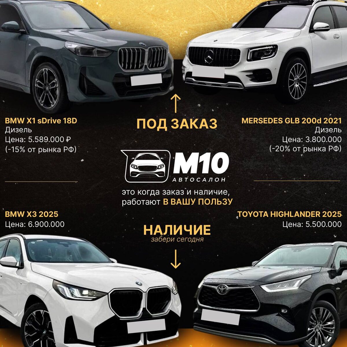 Хочешь максимально сэкономить — это авто под заказ. Почему? Потому что вы: — не переплачиваете за срочность — выбираете нужную комплектацию, а не «что есть» — заранее понимаете итоговую цену и выгоду Но есть важный момент 👇 Если вам нужен автомобиль здесь и сейчас, наши варианты всё равно выгоднее рынка, потому что мы умеем привозить автомобили по лучшим ценам. Разница простая: • под заказ — это максимальная финансовая эффективность • наличие — это скорость Автосалон М10 — когда и заказ, и наличие работают в вашу пользу. 📱Наш Telegram канал ☎️ +7(812) 318-33-12 Адрес нашего автосалона: 📍г. Кудрово, проспект Строителей 27 (Автополе)