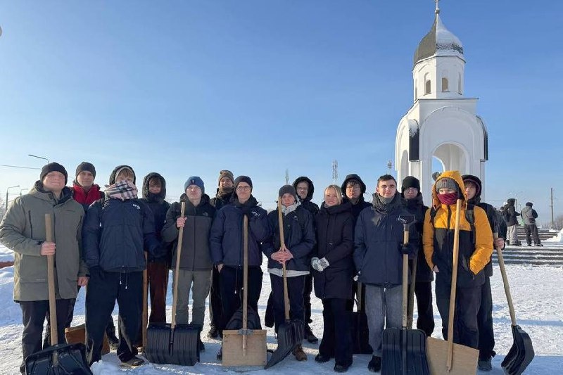 В городе над Сожем активисты Белорусского республиканского союза молодежи продолжают оказывать помощь в уборке снега, внося свой вклад в благоустройство города и сохранение памяти о героическом прошлом.