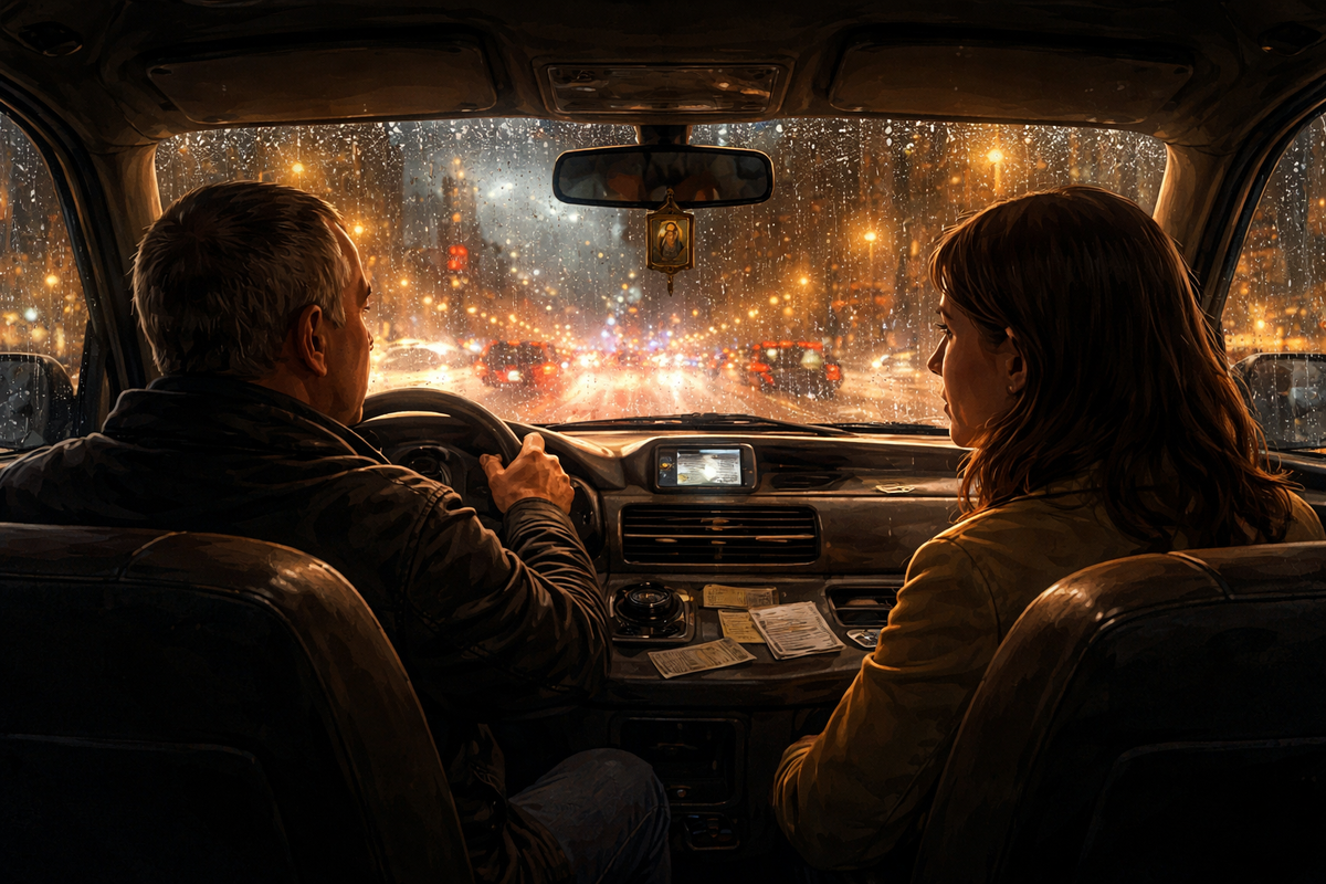 Работа таксиста, можно сказать, профессия исповедальная. Человек целый день заперт в движущейся коробке, мир видит через лобовое стекло, а поговорить — не с кем. И вот появляется пассажир, случайный, беззащитный перед этой вынужденной близостью, и водителю хочется не столько денег с него получить, сколько выгрузить накопившееся. Пассажир превращается в жилетку, в священника, в стенографистку. Сопротивляться бесполезно. Таксиста звали Геннадий. Лицо у него было круглое, усталое, как подушка после бессонной ночи. Руки лежали на руле с привычной покорностью судьбе. Он вёз пассажирку через осенний город, где дождь стирал контуры зданий, и вдруг, как бы продолжая давний, прерванный разговор, сообщил: — А я, между прочим, сейчас в Макдоналдсе покушал. Он сделал паузу, давая женщине осознать важность признания. Она промолчала, что, видимо, было правильной реакцией. — Ну, там, чизбургер-хренизбургер взял, нагетсы-х@ягетсы, картошку, там, хрентошку… Он произносил это с каким-то даже лирически
