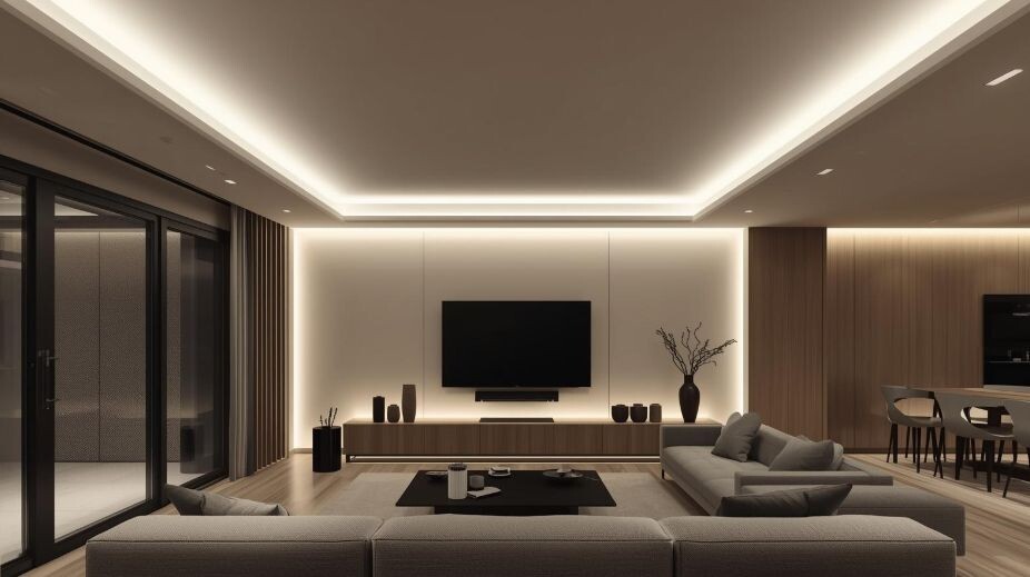 Свет перестал быть просто источником освещения и стал частью конструкции. Скрытые в потолке светодиодные ленты, установленные в профили Flexy или Slott, создают мягкое рассеянное свечение, зонируют пространство и добавляют интерьеру современности.