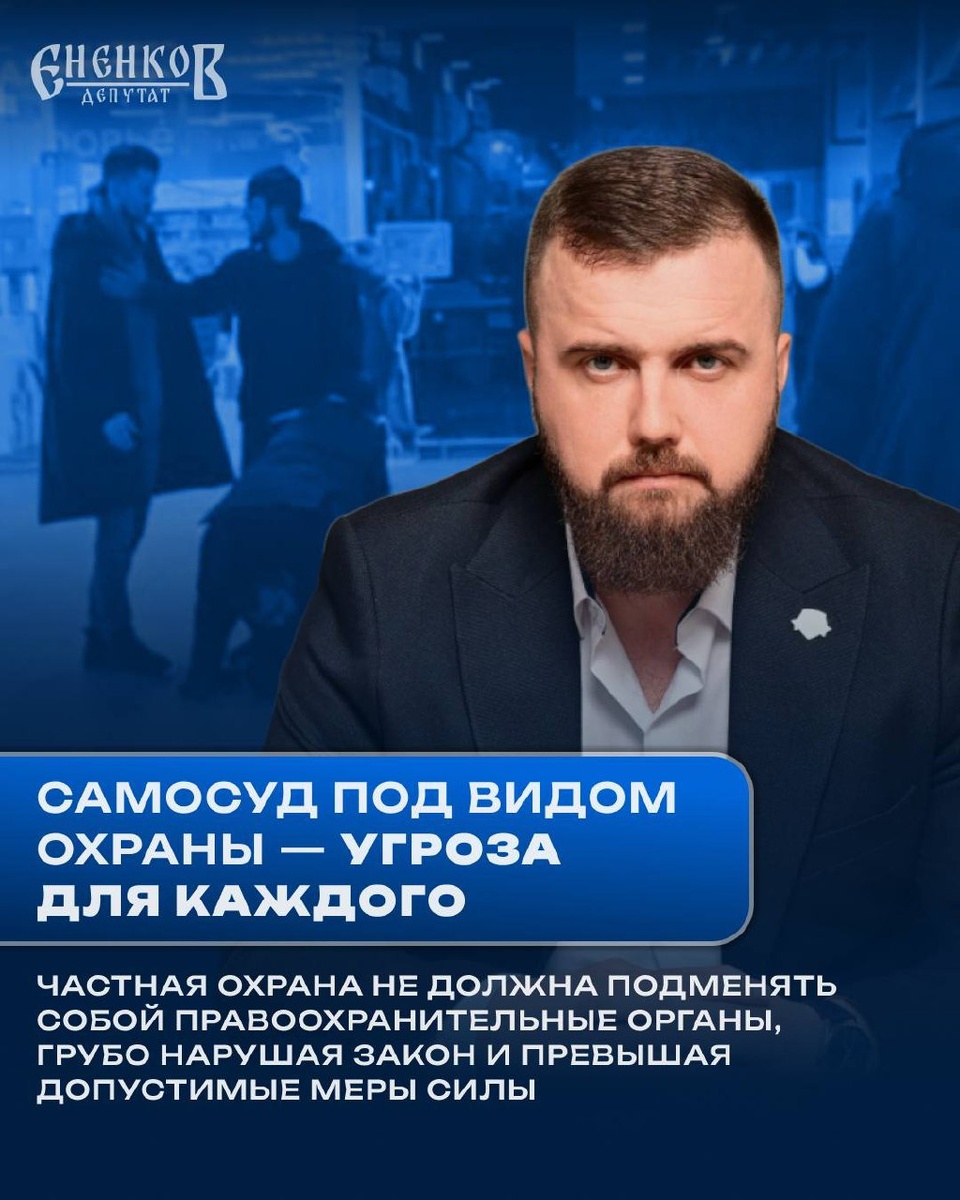 Никакая кража, даже если она была, не даёт права частной охране устраивать самосуд. Охранники в ТЦ всё чаще ведут себя как силовики: хватают, валят, бьют, душат. Играют в ОМОН, не имея ни полномочий, ни подготовки, ни ответственности, как у полиции. По закону они должны осуществлять сторожевую функцию, их задача - вызвать правоохранительные органы, а не решать судьбы людей кулаками. По данным СМИ, в «Сити Молле» охранники превысили все возможные границы. Итог - погибший молодой парень. Торговые центры - не зона беззакония. Если охранник забывает, кто он и где его полномочия заканчиваются - за это должна быть реальная ответственность. Депутат ЕНЕНКОВ. Подписаться