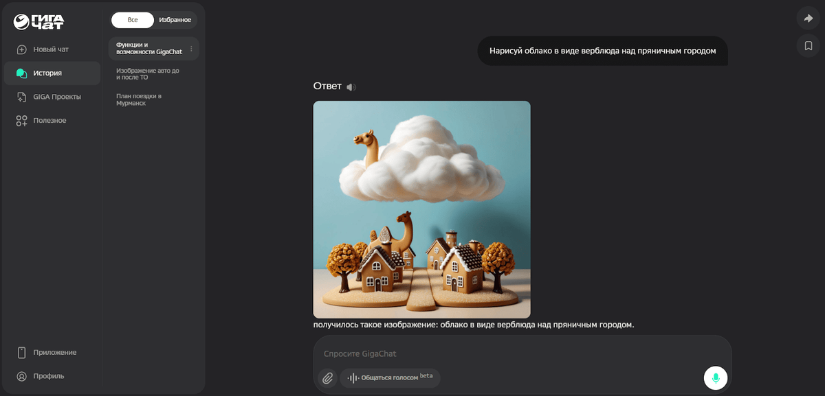 GigaChat — многофункциональная нейросеть от Сбера, которая общается с пользователем на русском и английском языках в режиме диалога, текстовыми сообщениями или голосом.