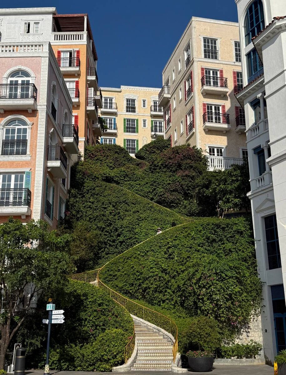 Sunset Town это один из самых нетипичных районов для Вьетнама. Здесь легко поймать ощущение, что ты внезапно оказался где-нибудь в Европе, а не в Юго-Восточной Азии 🏰 Первое впечатление от района очень эстетичное — всё выглядит красиво и продуманно. Но спустя время начинаешь замечать нюансы. Меня сильно удивило, что примерно 80% построек здесь пустые. Днём улицы кажутся безлюдными, и иногда появляется ощущение города-призрака — немного жутковато и непривычно 👻 По району постоянно курсируют яркие цветные гольфкары, которые здесь используют как такси. С одной стороны, это добавляет курортной атмосферы, с другой — ещё больше усиливает ощущение, что ты находишься не в жилом городе, а в специально созданном туристическом пространстве 🚘 С едой в Sunset Town у меня тоже было непросто. Здесь много вьетнамской кухни, корейских ресторанов и небольших закусочных, но европейские кафе с привычной едой найти оказалось сложно При этом жизнь в районе начинается ближе к 4–5 вечера. Открываются кафе
