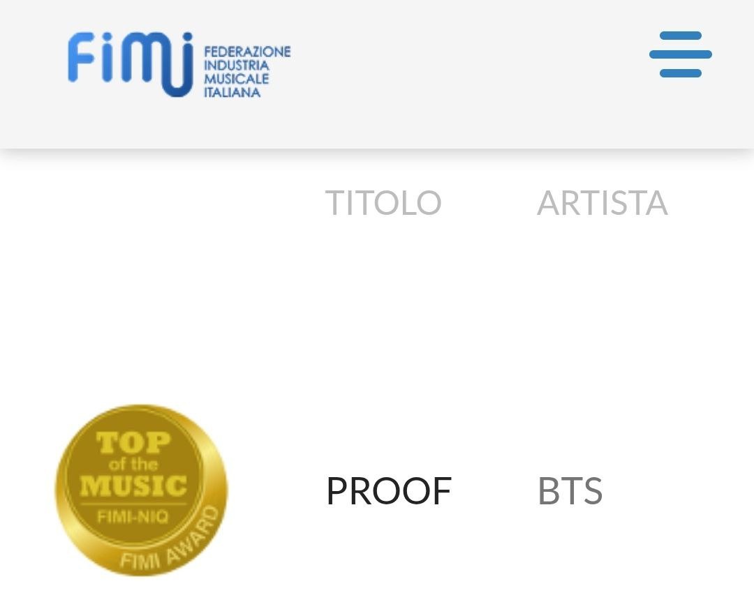🫧 "Proof" получил золотой сертификат в Италии с тиражом 25 тысяч экземпляров. Это пятая сертификация альбома BTS в этой стране.