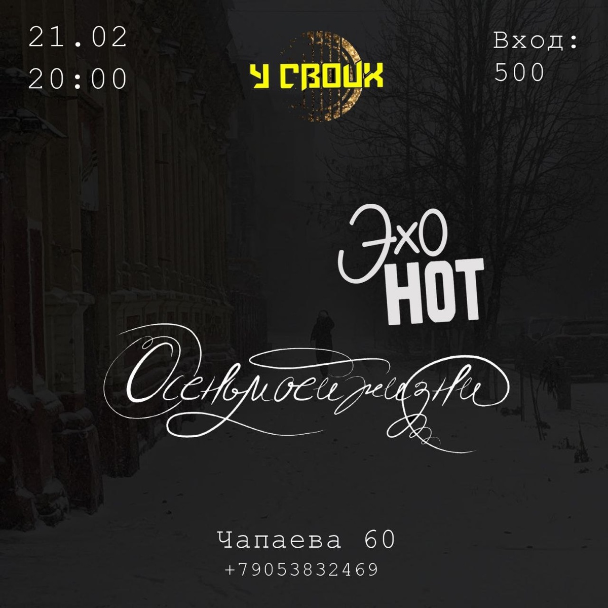 Ровно через месяц, 21 февраля выступим на арт-площадке У СВОИХ вместе с крутейшими ЭХО НОТ !