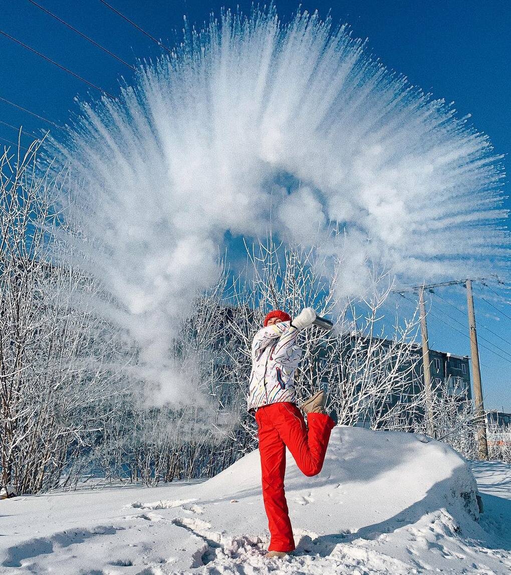 Обратимся и мы за комментарием к компетентному университетскому учёному. О природе явления рассказывает физик, старший научный сотрудник лаборатории сенсорики ЮУрГУ Александр Герасимов: Когда горячую воду распыляют на морозе, она испаряется гораздо быстрее, чем холодная. Чем ближе