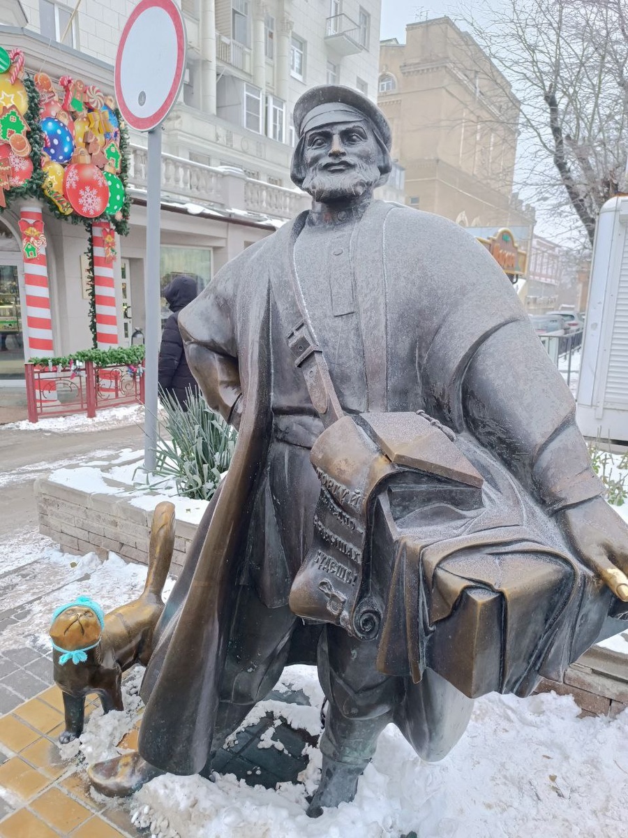 Ростовская область, 22 января 2026, DON24.RU. Заботливые ростовчане надели на кота у скульптуры коробейника Дмитрия Лындина маленькую голубую шапочку с помпоном. Об этом пишет газета «Молот» в своем телеграм-канале. Январский снегопад вносит свои коррективы в жизнь даже таких холодных пушистиков. Фото: газета «Молот» Монумент установлен недалеко от входа в парк им. Горького на пересечении улицы Большой Садовой и проспекта Буденновского. Он пользуется большой популярностью среди гостей и жителей донской столицы второй десяток лет. Образ четвероногого списан с его самодовольных городских собратьев из плоти и крови, рассказывал автор скульптуры.
