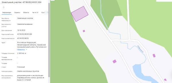 Название: Площадью 2000 кв.м., кадастровый номер 47:16:0524001:384, разрешенное использование: для размещения и эксплуатации индивидуальных