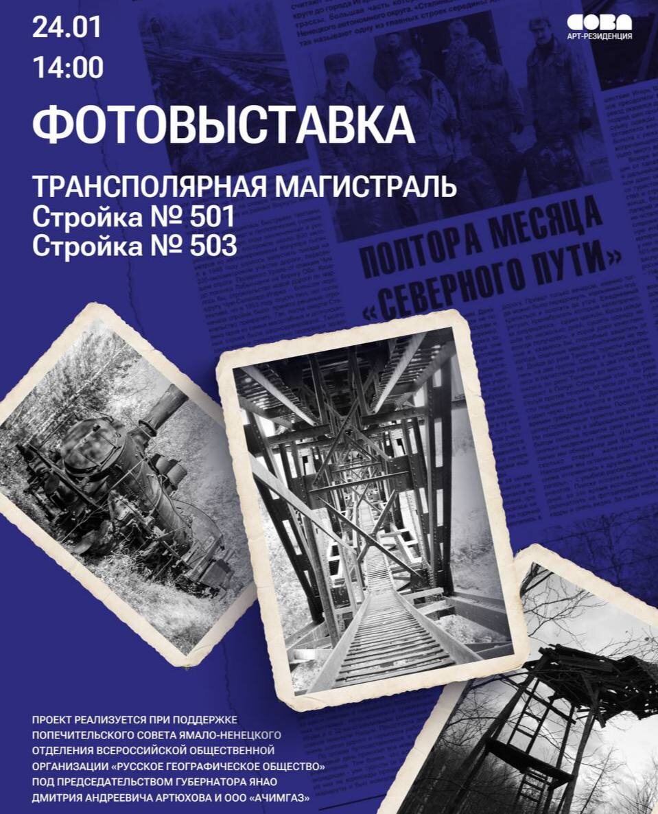Уже в эту субботу экспозиция «Трансполярная магистраль. Стройка № 501. Стройка №503» перенесёт гостей в середину XX века — эпоху грандиозного проекта по строительству железной дороги за Полярным кругом. В рамках открытия будет показан фильм Владислава Загорского — съёмки части 501-й стройки, интервью участников экспедиции 2009 года, где путешественники прошли пешком от Надыма до Салехарда. #мыидём ⏲24 января в 14:00 📍арт-резиденция «Сова» Вход свободный! ❄️ НУР. Официально | Подписаться в MAX