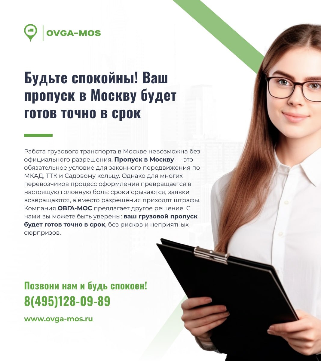 Компания ОВГА-МОС предлагает другое решение. С нами вы можете быть уверены: ваш грузовой пропуск будет готов точно в срок, без рисков и неприятных сюрпризов.