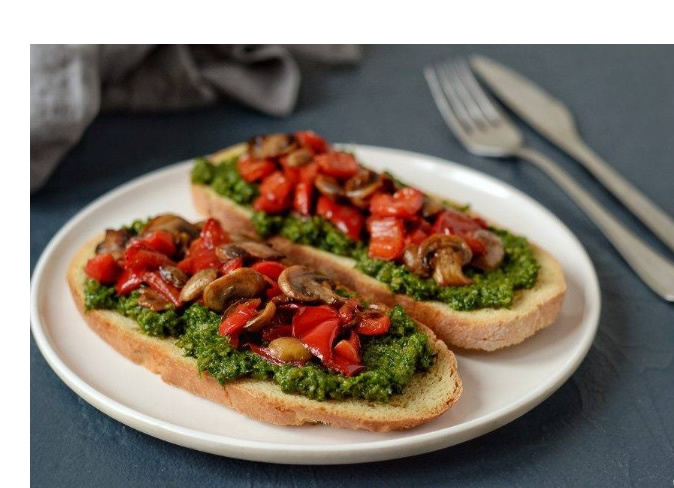 Брускетта с песто и овощами гриль
