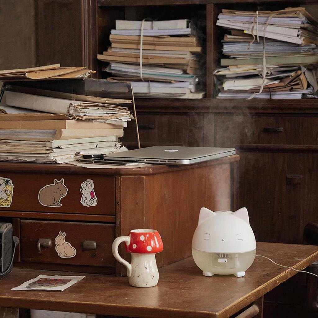 Но финал наступил, когда я включила увлажнитель. Маленький белый котик, из макушки которого валит бодрая струя пара.