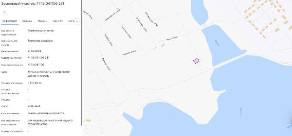Название: право заключения договора аренды земельного участка из земель населенных пунктов с кадастровым номером 71:18:041106:281, площадь