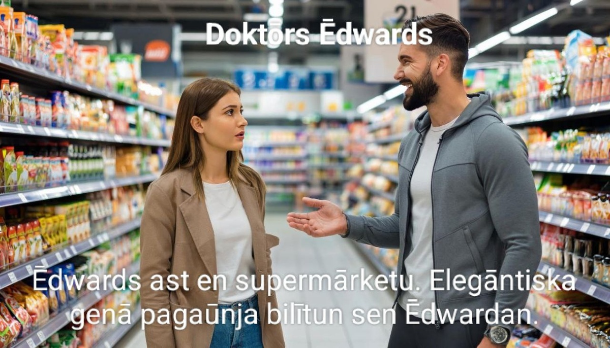 #prūsiskai_kōmiksai@prusiska_bila Doktōrs Ēdwards Ēdwards ast en supermārketu. Elegāntiska genā pagaūnja bilītun sen Ēdwardan. —Kaīls! —Ō, kaīls! —Assei tū doktōrs? —As? Ēmmm... Jā. As asma doktōrs. —Labbai. Ēdwards ni ast doktōrs. —As turri tūlan penningans. As buwinna en debīkasmu buttu. As turri tēmprans... ēmmm... laknans! —Labbai, adder... Wīru prawerēi doktōrs teinū! —Ka? Kwēi ast stas wīrs? —Tāns ast prēi daddan! Madli pagalbāis stesmu wīru! Tāns ast spārtai enwārguns. —Wōi, wōi! Ēdwards wīda gennan. Tāns preibēga be aubilāi sen tennan. —Kaīls! Assei tū doktōrini? Mennei prawerēi pagalba! Доктор Эдуард Эдуард в супермаркете. Элегантная женщина начинает говорить с Эдуардом. —Привет! —О, привет! —Ты — доктор? —Что? Я? Эммм... Да. Я — доктор. —Хорошо! Эдуард — не доктор. —У меня много денег. Я живу в большом доме. У меня дорогие... эммм... штаны! —Хорошо, но... Мужчине сейчас нужен доктор! —Что? Где этот мужчина? —Он около молока! Пожалуйста, помоги этому мужчине! ⬇️