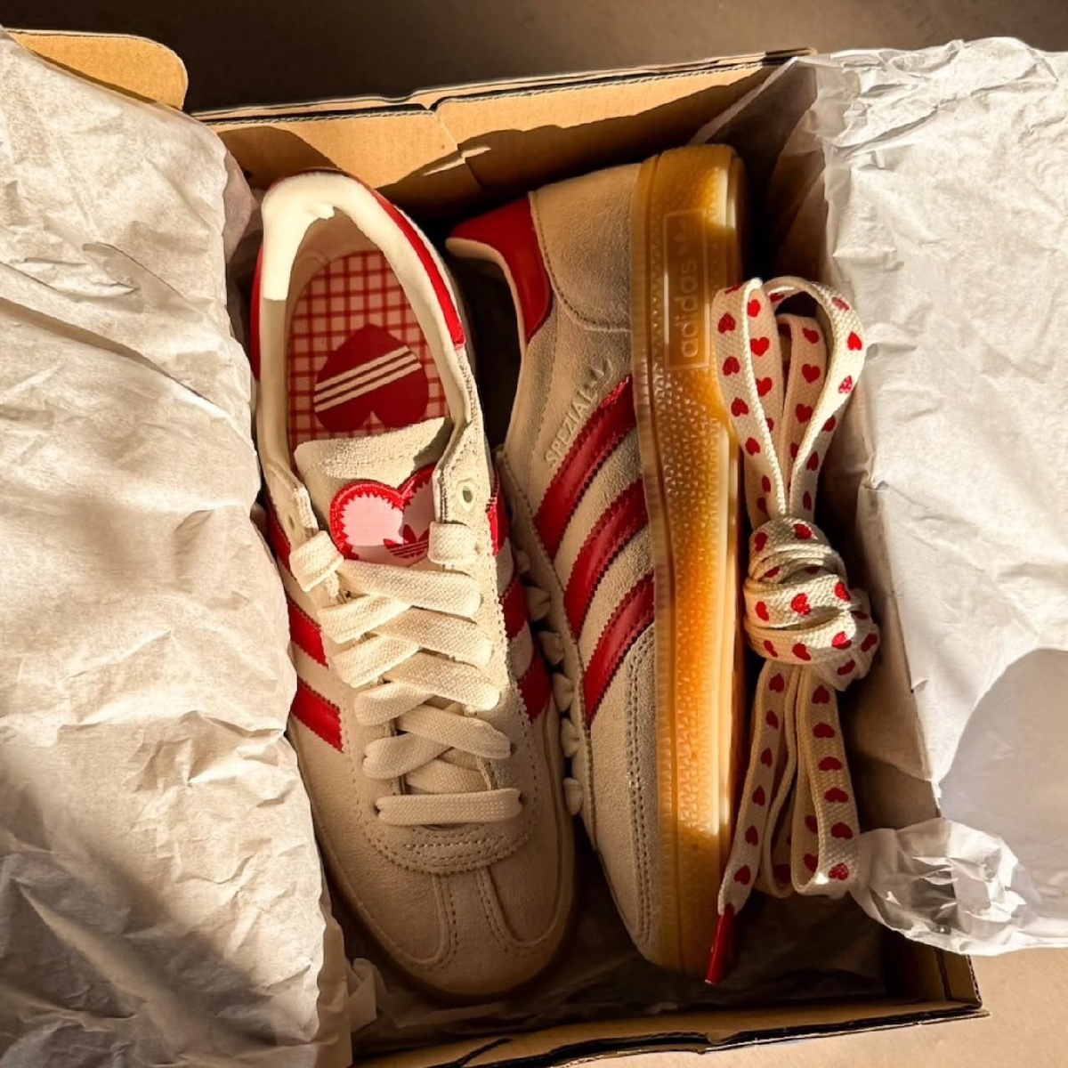Эта пара оформлена специально к Дню всех влюблённых: 💘 мягкие кремово-красные цвета 💘 сердечки на стельке и шнурках 💘 детали, которых нет в обычных моделях Такой дизайн не у всех, и это делает обувь отличной для подарка или весенних образов.