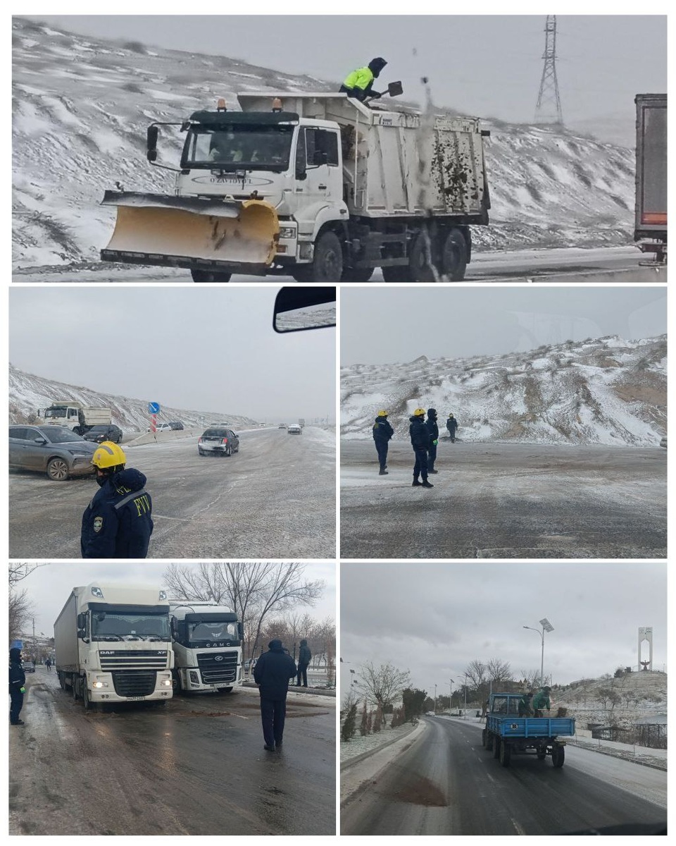 Aйни пайтда Жиззах вилоятининг барча ҳудудларида фавқулодда вазиятларнинг олдини олиш, транспорт воситаларининг узлуксиз ва равон ҳаракатланишини таъминлаш мақсадида махсус техникалар ёрдамида автомобиль йўлларини қордан тозалаш ишлари олиб борилмоқда. Каналимизга обуна бўлинг ва энг сўнгги янгиликларни кузатиб боринг Jizzaxnews |Тelegram | Facebook | Dzen | YouTubе