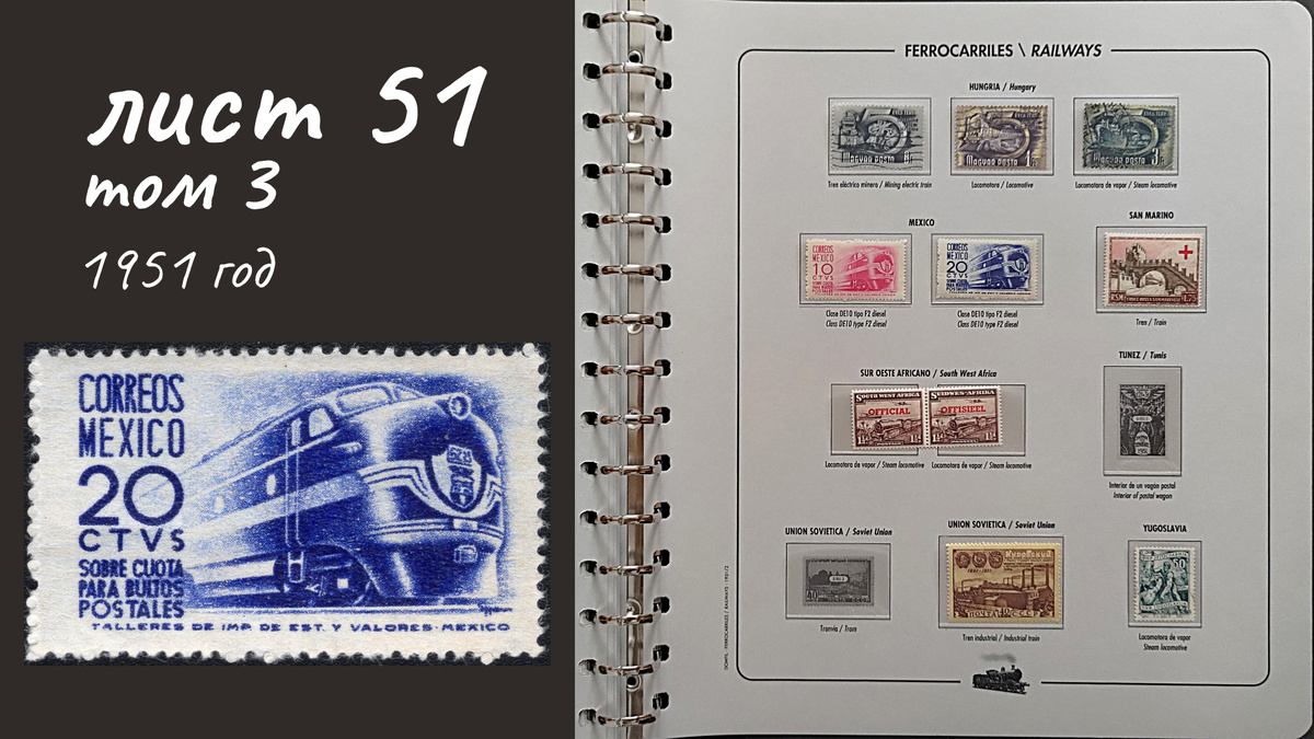 5. Мексика, 1951 год, № P 8, марка с водяным знаком № 11. Тепловоз. В галерее марочный лист (нажмите правую стрелку).