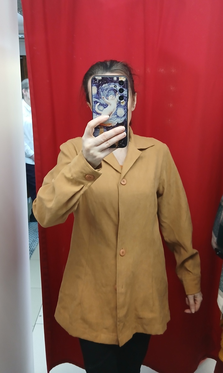 Здравствуйте, обзор из Столичного гардероба, цена 590 за кг, то есть скидка максимальная. Блузка из плотной ткани с малюсеньким ворсом. Если была бы подкладка, то получился жакет, не блузочная ткань совсем. Кардиган без застежки. Вспомнила, где носили много таких кардиганов - в "Отчаянных домохозяйках", но там и климат не наш, там можно не застегиваться. Длинный кардиган, толстый трикотаж. Вот такого яркого цвета. В этот раз единственная вещь, где я нашла шерсть. Как я уже писала, маленький ассортимент и выбор плохонький. Свитшот с забавным леопардом, как будто детский рисунок, зато мордочка добрая). Хлопок и синтетика. Жакет без состава, но он тяжёлый и основательно. Из такой ткани иногда пальто шьют. Даже по фотке видно, что держится с достоинством, нет ни одной морщинки или складки. Двубортный жакет с металлическими пуговицами. Лёгкий серый в розовую клетку и на розовой подкладке. Вискоза и синтетика. Новогодний джемпер похож на акриловый. Чёрный джемпер расшит бусинами. Джемпер-о