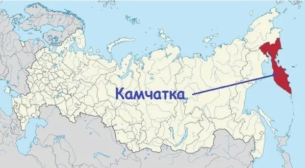 А теперь самое интересное: Если взять глобус и покрутить его, то окажется, что Камчатка — это самое восточное место всей нашей огромной страны. Когда в Москве только-только начинается утро, на Камчатке уже полдень, и они давно обедают! Потому что солнышко, двигаясь по небу, светит сначала на Камчатке, а потом уже и в Москве. Мы с вами уже нашли на карте удивительный край — полуостров Камчатку. Помните, она похожа на рыбий хвост на самом краю России? Теперь давайте заглянем туда и узнаем, какие волшебные сокровища там спрятаны!
