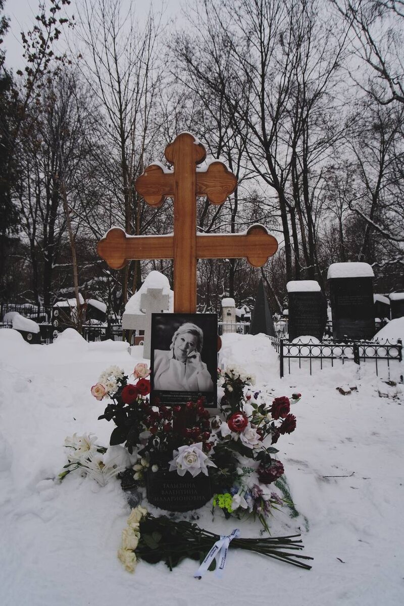 Она не раз ставила меня перед жестоким выбором. И каждый раз я выбирала именно её. Скажу честно: это было нелегко. И больше всего мне жаль, что я не смогла дать моим самым близким людям столько внимания и любви, сколько они заслуживали. Но если бы мне предложили начать всё сначала, я бы, наверное, не стала ничего исправлять. Моя жизнь сложилась именно так». Это написал Валентина Илларионовна Талызина в своей книге «Мои пригорки, ручейки. Воспоминания актрисы». Театр Моссовета почтил память Валентины Илларионовны в день ее рождения на Ваганьковском кладбище.