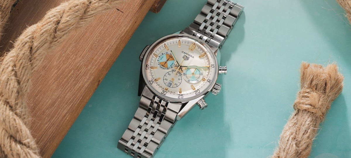 TAG Heuer сейчас действует по уму: вместо того чтобы каждый год устраивать «салют из лимиток», бренд тихо докручивает Carrera — по механике, по функциям и по настроению. Seafarer в этой линейке — самый странный и, по-хорошему, самый интересный. Хронографа нет, зато есть приливный индикатор, причём не ради строчки в пресс‑релизе, а с нормальной проработкой под лунный цикл на калибре TH20‑04. 42 мм, 100 метров водозащиты, шампань‑циферблат и бирюзовый диск приливов, который живёт своей жизнью в течение суток и задаёт всё визуальное движение на морде. Это не «дайвер для нырять», а такие умные морские часы: спокойные, без лишней агрессии, но с очень понятным характером. Дальше — два Carrera Chronograph 41 мм без даты. Тут TAG просто пошёл и вычистил всё лишнее: стекло‑«glassbox», аккуратная разметка, калибр TH20‑01 с 80 часами хода и нормальной колонной колесой. Два вкуса: teal‑циферблат — холодный, глубокий, прям учебник по Carrera; чёрный с красными акцентами — чуть более спортивный,
