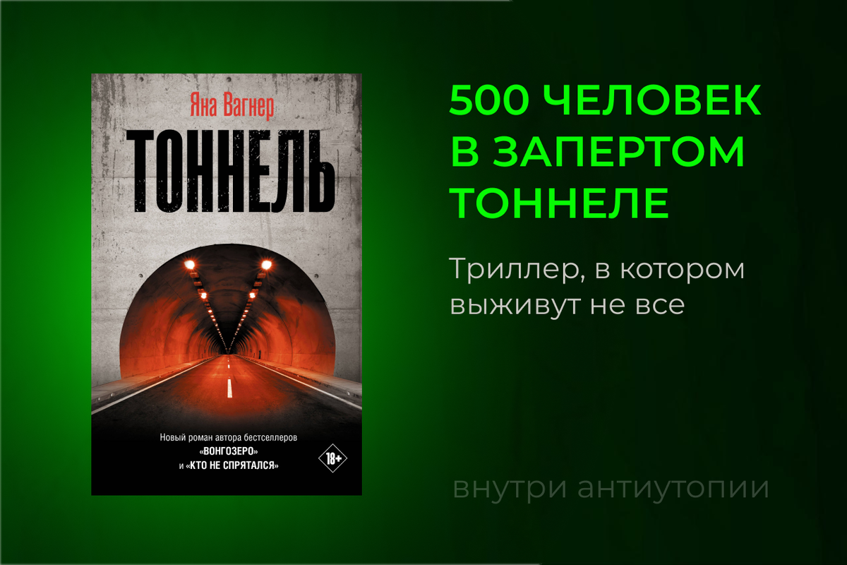 Автомобильный тоннель под рекой. С обеих сторон захлопываются ворота. На четырёх километрах дороги оказываются заперты около пятисот человек: мужчины и женщины, дети, гастарбайтеры, полицейские, чиновники, таксисты, дальнобойщики. Люди, которые в обычной жизни вряд ли пересеклись бы. Снаружи произошла некая катастрофа. Внутри — жара, нехватка воды и воздуха. Любая ошибка здесь усиливает давление: неудачная попытка выбраться обесточивает тоннель, а вместе со светом исчезает и последняя надежда. Так начинается роман Яны Вагнер «Тоннель» — психологический триллер, в котором внешняя угроза отступает на второй план, уступая место куда более опасной силе — человеческой природе. Тоннель в книге — не просто место действия. Это мини-модель общества. В условиях изоляции быстро стираются социальные маски, а привычные правила перестают работать. Люди начинают объединяться по самым простым и древним признакам: «свои — чужие», «сильные — слабые», «верные — неверные». Автор показывает, как стремитель