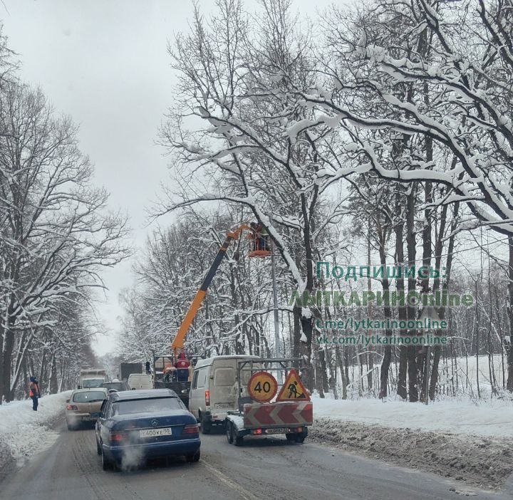 На Лыткаринском шоссе делают освещение. Проезжают все по очереди, небольшая пробочка.