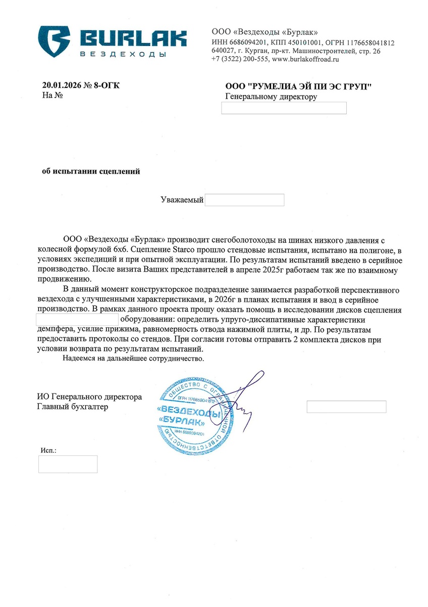 📝Это не церемониальное благодарственное письмо, которое пылится в подвалах сайта, а часть повседневной работы. 😉Очень часто случается, что прочные, доверительные и долговременные деловые отношения рождаются из заведомо конфликтной ситуации. 🚚Партнеры обратились к нам, в компанию Starco в 2023 году с претензией по качеству наших усиленных комплектов сцепления для ГАЗель Next - SPK28015KV со специальной усиленной накладкой KEVLAR. ⚡Глубокие, не боясь этого слова, научные изыскания, подкрепленные техническими исследованиями на уникальном проверочном оборудовании, которым оснащена лаборатория Starco, позволили нам не только убедить партнера в качестве наших продуктов, но и заложили фундамент для дальнейшего плодотворного и открытого сотрудничества. 🔥С тех пор сцепления Starco и тросы переключения КПП Espra были установлены на сотни вездеходов в рамках серийного производства, а эти вездеходы намотали на свои колеса сотни тысяч километров нет… не дорог, а «белого безмолвия» в невообр