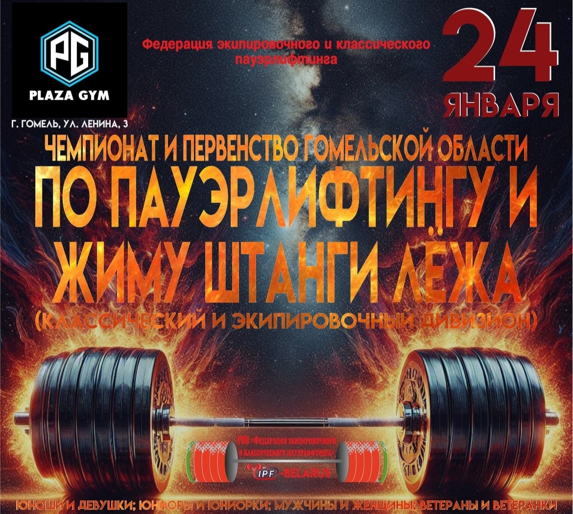 24 января 2026 года в г. Гомель, Республики Беларусь будут проходить Чемпионат и Первенство Гомельской области по пауэрлифтингу (троеборью, троеборью классическому, жиму и жиму классическому).