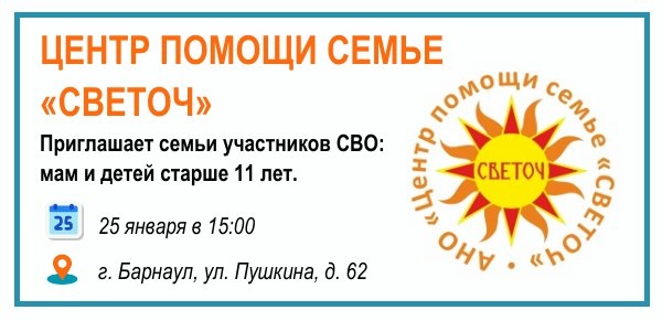 ☀️Центр помощи семье «Светоч» приглашает семьи участников СВО (мамы и дети старше 11 лет) вспомнить и проанализировать прошедший год вместе