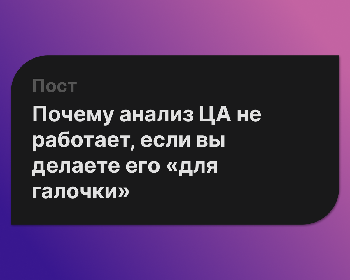 Но на практике у большинства блогов и продуктов он либо не работает, либо вообще не используется. Причина простая: анализ ЦА делают формально, а не как рабочий инструмент. Обычно это выглядит так: