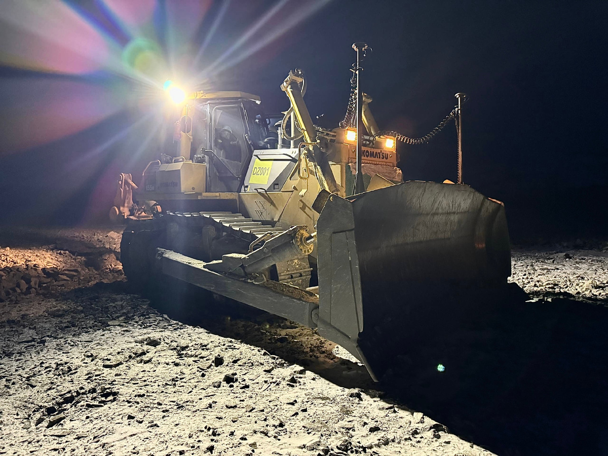 Строительство горно-обогатительных комбинатов (ГОК) и подъездных путей в северной зоне — это вызов, который требует не только сверхпрочной техники, но и интеллектуальных решений. Когда температура опускается до –40…–50°C, а полярная ночь диктует свои правила, традиционные методы геодезического контроля становятся неэффективными. В таких условиях использование автоматических систем нивелирования на тяжелой технике (бульдозерах и автогрейдерах) превращается из «дополнительной опции» в производственную необходимость.Главная сложность северных строек зимой — критически короткий световой день, длящийся не более 2–3 часов, и постоянные сумерки. В условиях «белого безмолвия», когда небо сливается с заснеженным ландшафтом, оператор физически не может контролировать отметку «на глаз».Основные проблемы без систем автоматизации: Потеря ориентиров: При искусственном освещении фар тени искажают рельеф, что ведет к ошибкам в профилировании. Усталость оператора: Постоянное напряжение зрения и работа