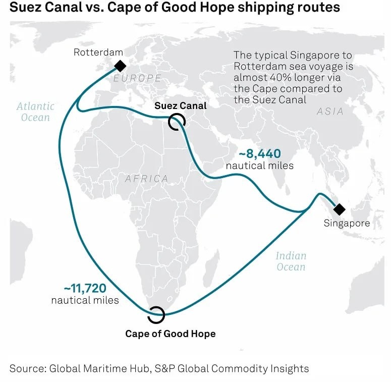 Французская судоходная компания CMA CGM приняла решение снова перенаправить суда на ряде сервисов, которые ранее ненадолго вернулись к транзиту через Красное море и Суэцкий канал. Теперь суда вновь пойдут в обход мыса Доброй Надежды.