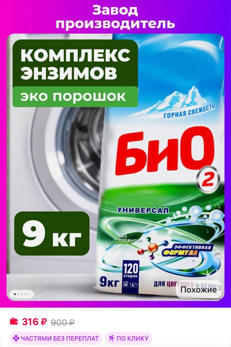 😀😀😀 9 кг БиО2 Порошок стиральный автомат