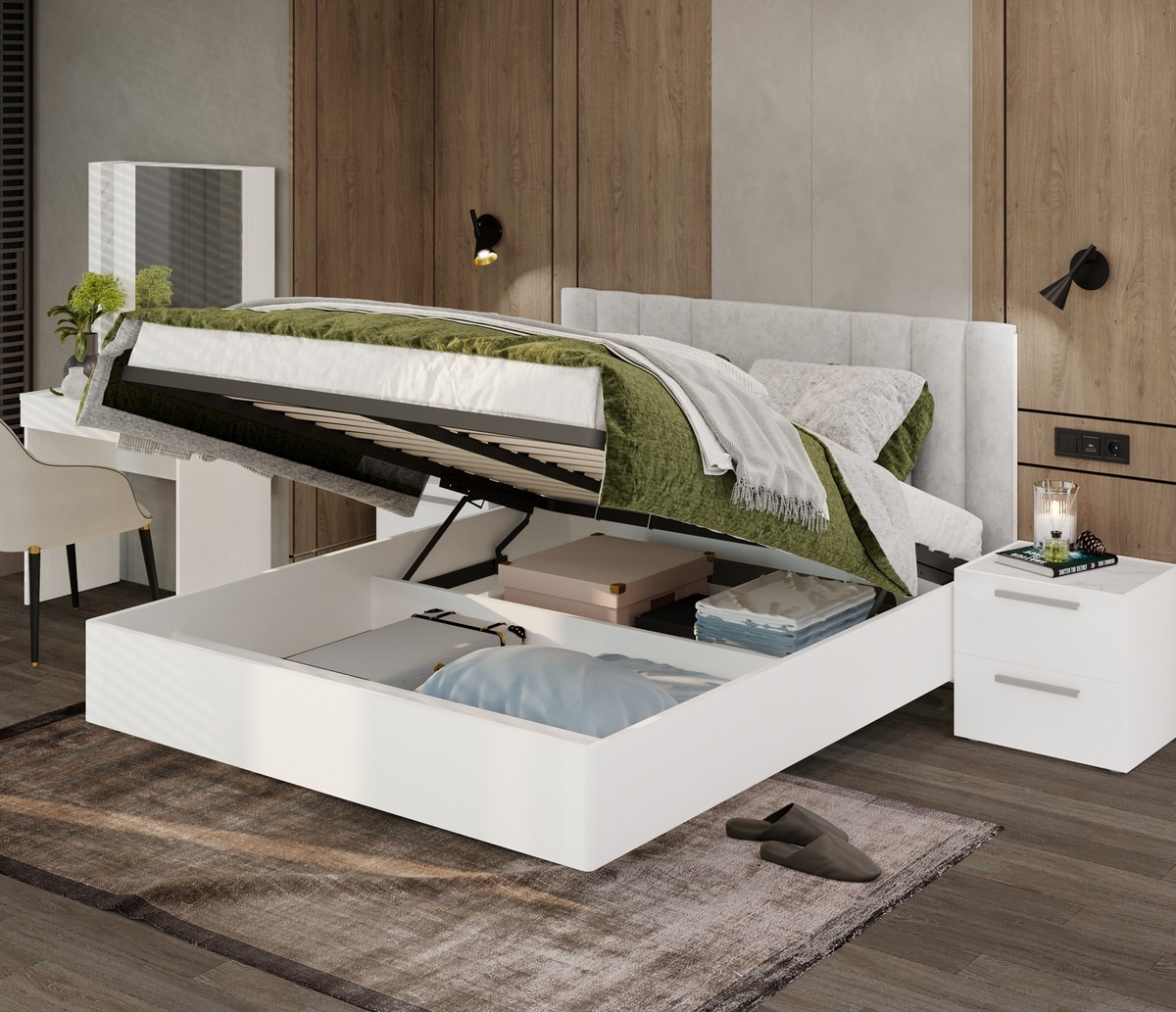 Как использовать пространство под кроватью с умом: Ваш секрет идеального порядка Знаете ли Вы, что площадь под кроватью часто равна площади целого шкафа? Это настоящая кладовая, которая ждет, когда Вы ею правильно распорядитесь. Простой способ превратить эту зону в функциональное хранилище — выбрать кровать с подъемным механизмом. Почему это удобно? • Максимальный объем: Вмещает громоздкие вещи, которые сложно разместить в шкафу: чемоданы, зимние одеяла, сезонную обувь, спортивный инвентарь. • Идеальный порядок: Вещи скрыты от глаз, но всегда под рукой. Больше не нужно сдвигать кровать, чтобы что-то достать. • Защита от пыли: Встроенное основание создает закрытое пространство, чего не могут обеспечить обычные коробы под кроватью. Что хранить под кроватью с умом? 🧣 Сезонный текстиль: пуховики, шерстяные пледы, теплое постельное белье. 👜 Габаритные предметы: дорожные сумки, коробки с декором, запасы бытовой химии. 📚 Архив: фотоальбомы, детские рисунки, важные документы в