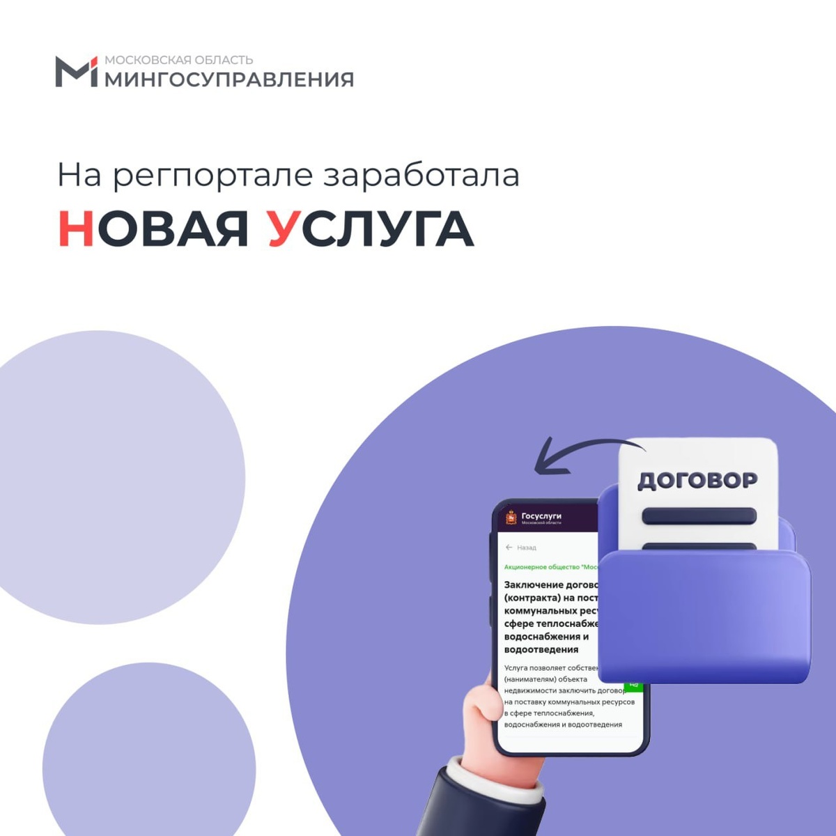 Теперь заключить договор на поставку коммунальных ресурсов в сфере теплоснабжения, водоснабжения и водоотведения можно на региональном портале: https://uslugi.mosreg.ru/services/23190. Сервисом могут воспользоваться собственники или наниматели объектов недвижимости — физические и юридические лица, а также ИП в Можайском и Рузском муниципальных округах. Проект договора поступит в личный кабинет заявителя. При желании договор можно подписать электронной подписью. Для этого достаточно дать согласие при заполнении онлайн формы заявления. В этом случае документ возможно будет подписать через приложение «Госключ». 🏙Подмосковье - актуальные новости