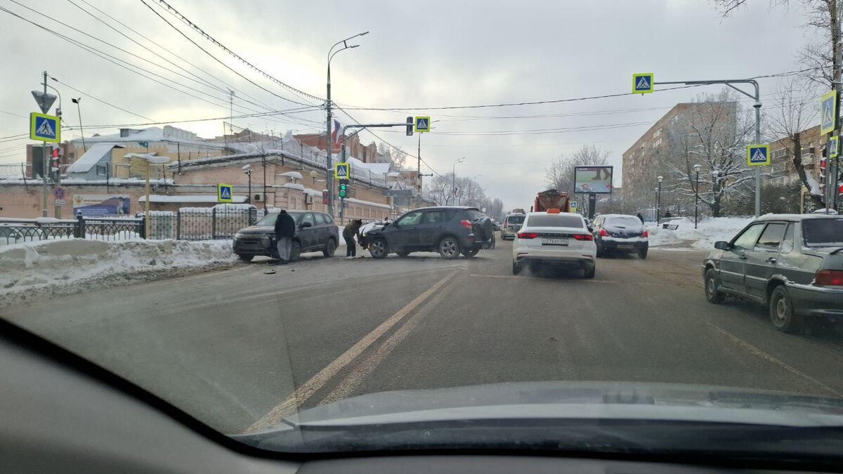 Красной Армии и ул. Болотной. Одна из машин полностью перекрыла полосы движения на перекрестке в сторону центра. Движение затруднено. 🤩Сергиев Посад Time. Подписаться. ⚡Прислать новость.