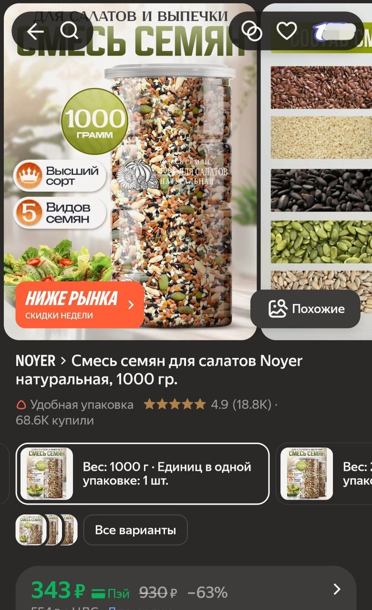 💻Смесь семян для салатов Noyer натуральная, 1000 гр - 343р (я.пэй)